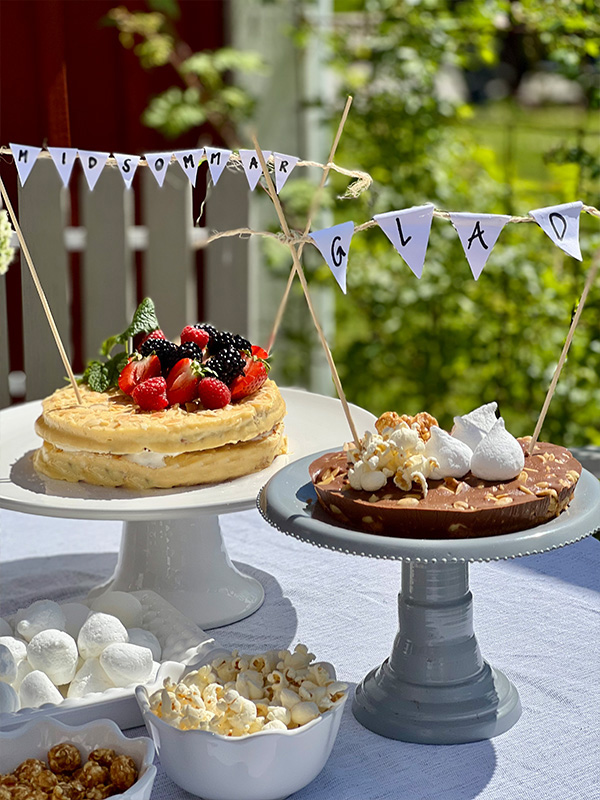 Bjud in nära och kära till ett härligt somrigt midsommarfirande oavsett väder. Gärna med sill på bordet följt av en läcker efterrätt eller somrig fika. För mer tid till Små grodorna och mindre tid till stök i kök har vi ett bra knep: köp hem två goda Almondytårtor. Lägg den i frysen och ta fram den någon timma innan de ska ätass, dekorera och servera. Så kan du ägna tiden åt att fira midsommar i lugn och ro utan att stå för länge i köket istället.