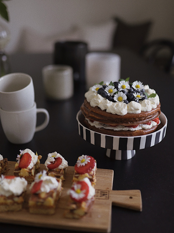Med vårt recept kan du bjuda in 8-12 personer på en läker fika. Du behöver två Almondy Daim Cake, 3 dl grädde, 200g färska jordgubbar och 150g färska blåbär. Vill du piffa lite extra kan du använda några fina blommor för extra dekoration.