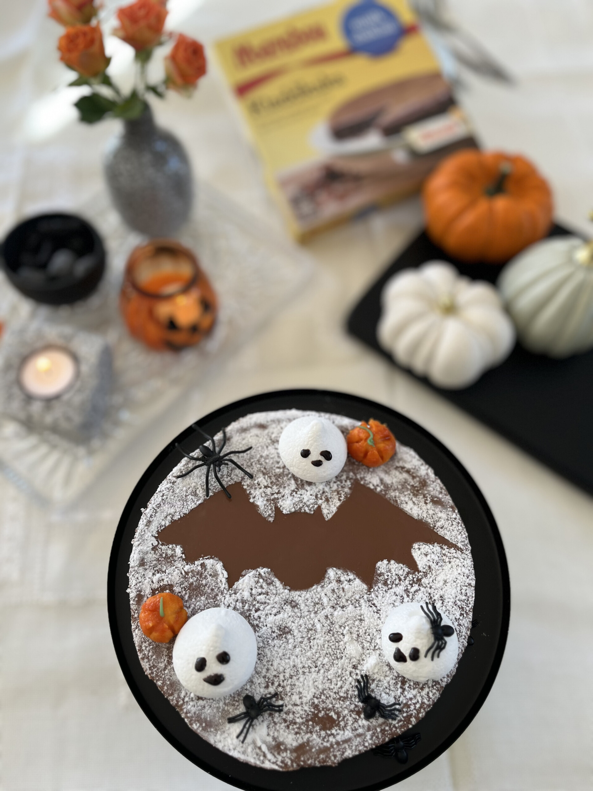 Steg 4: Lägg till sista touchen – Vill du ha en extra spökig känsla? Dekorera med små spindlar, som du plockar bort när det blir dags att äta. Det blir pricken över i:t på din Halloweenkreation. Klart! Nu har du en alldeles egen fladdermuskladdkaka – gullig, god och lagom kuslig! Perfekt till Halloweenfesten eller en mysig fikastund i höstmörkret.