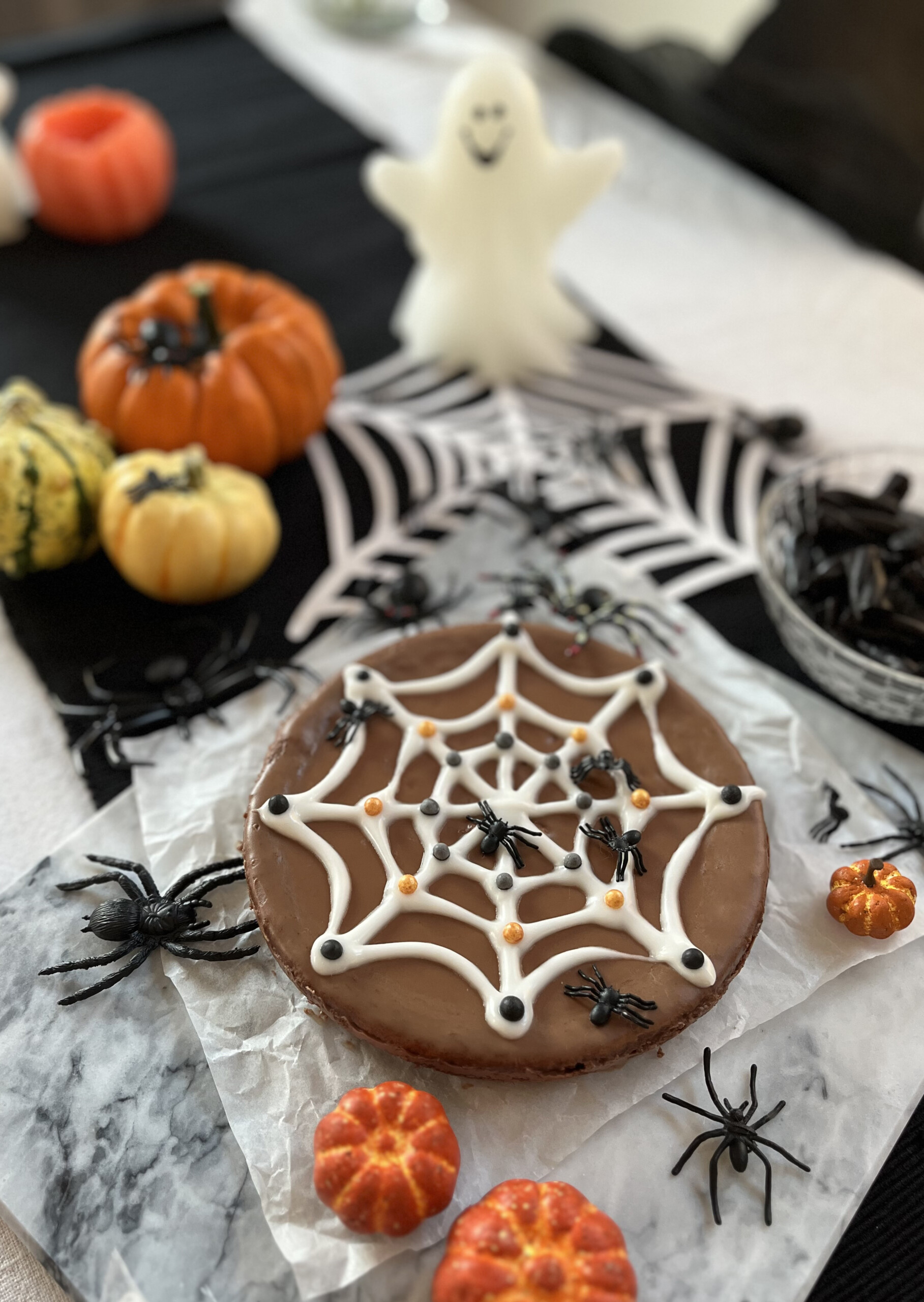 Steg 4: Lägg till pricken över i:et – För extra Halloweenkänsla kan du lägga på några små plastspindlar som dekoration, men kom ihåg att ta bort dem innan det är dags att fika!